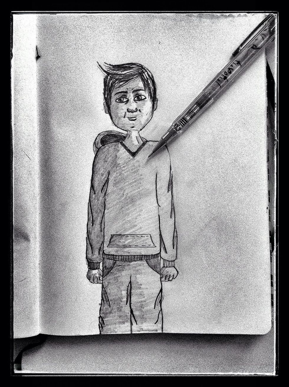 Now we will start doing the shadow, I will use little bit different pencil, it made of coal, you can get it from normal sationery shop, or you can use any normal pencil.