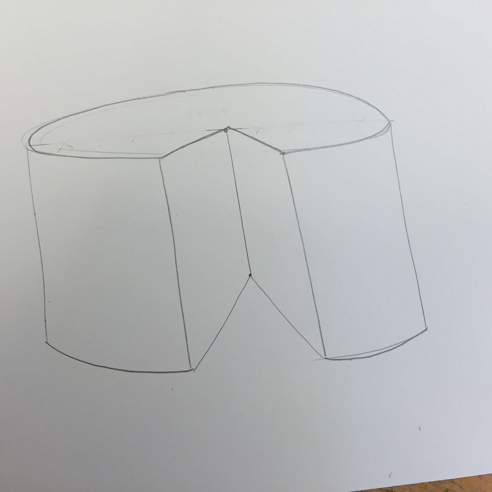Draw a horizontal line to divide the oval in 1/2.