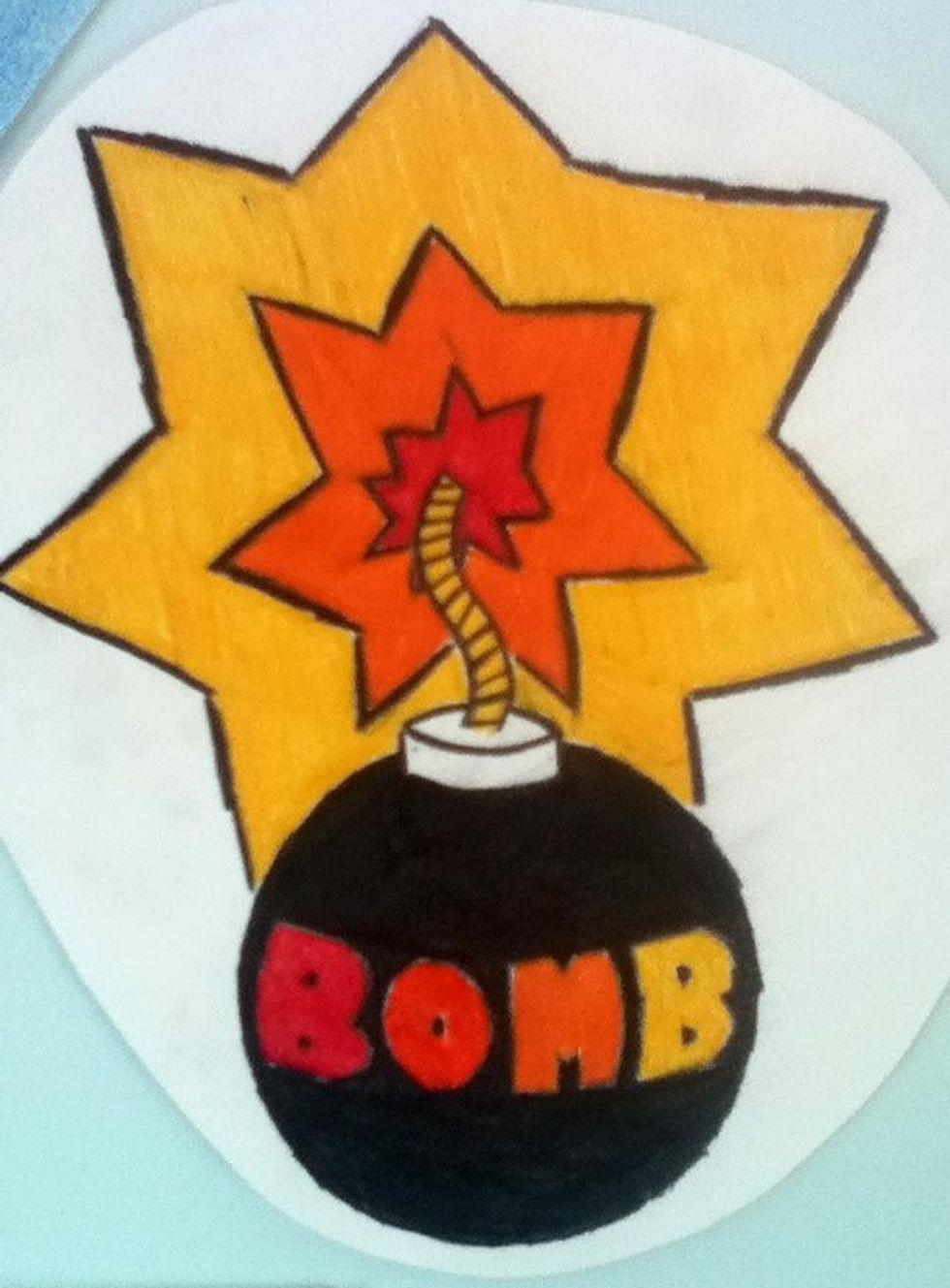 Draw a shape like a wonky star around the top of the fuse.