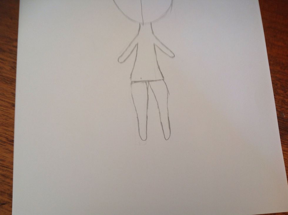 The draw lines coming of the hips to make the legs. If you want the effect that I have done then draw a little lump on the side of the leg.