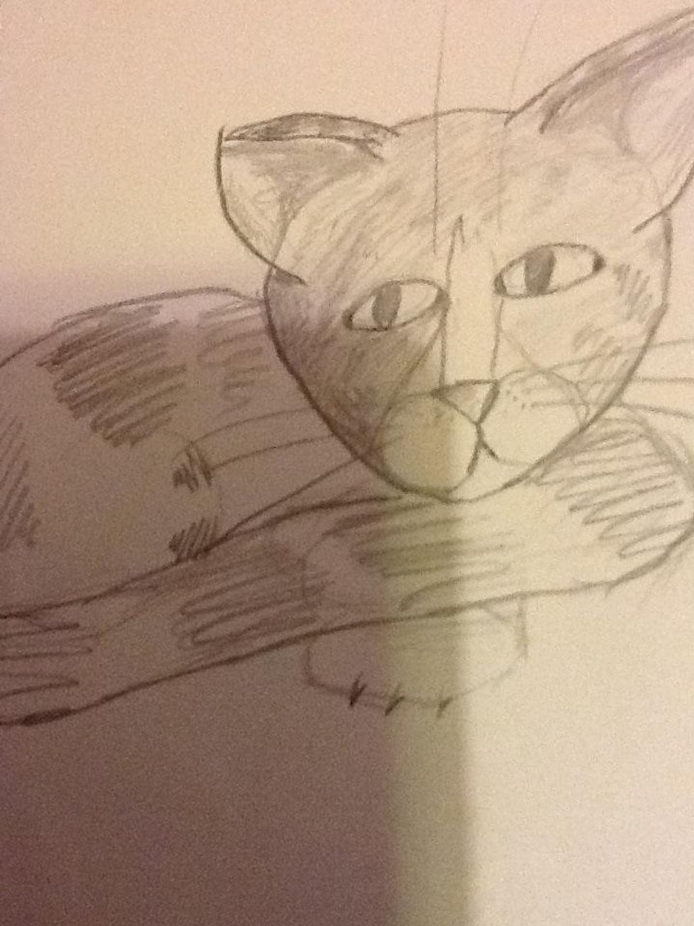 Now draw in the cats pupils. They will need to me slightly slanted.