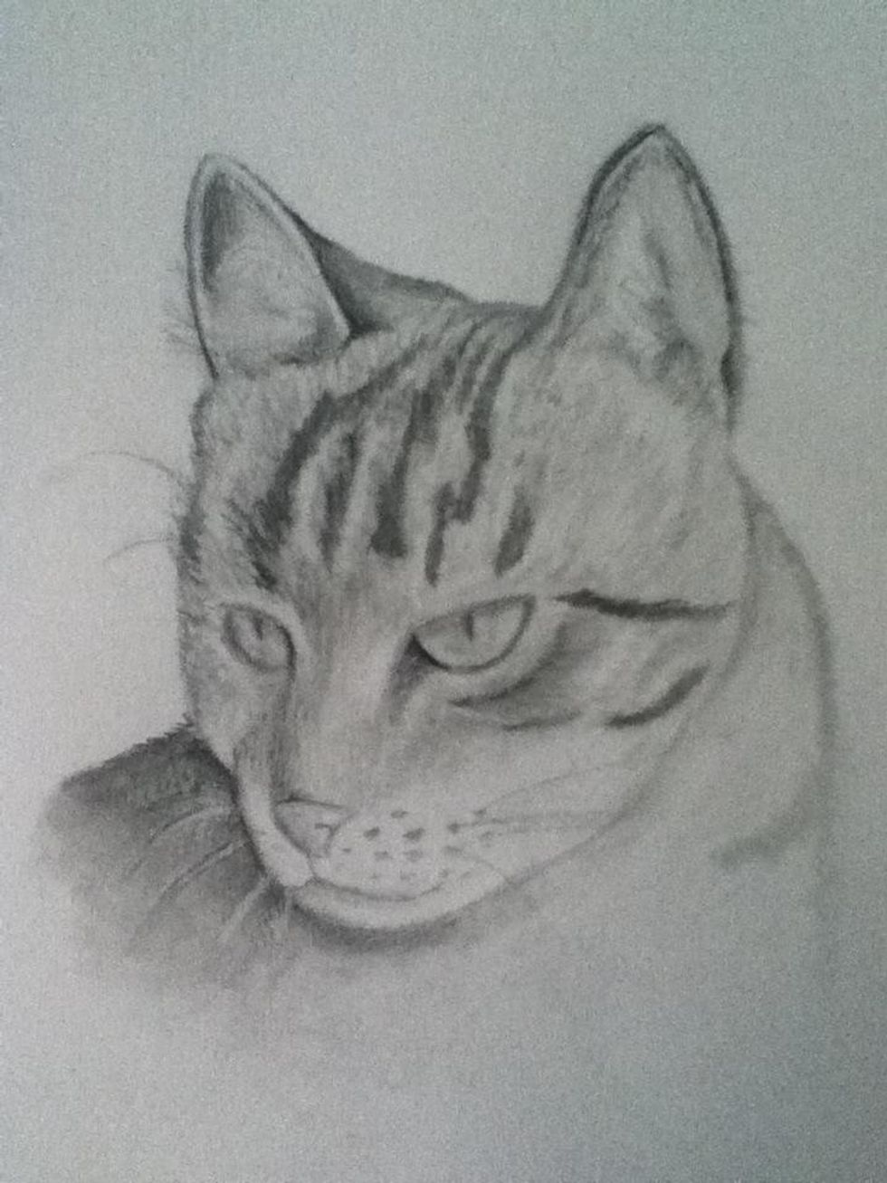 Shading is important in order to give your cat life. The cat has specific shadows in the ears, under the chin, and the eyes. I chose to show the light as if it was angled high in front of him.