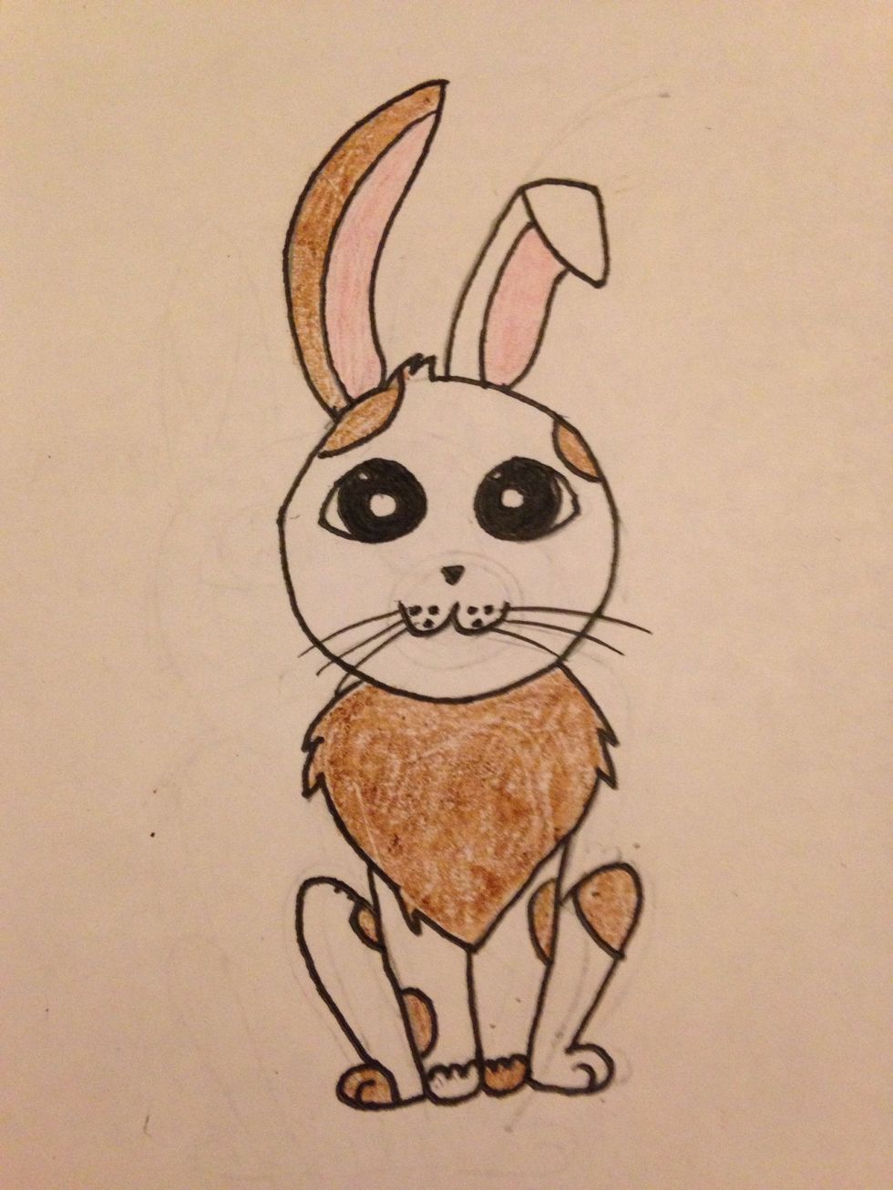 Take a black pen and retrace all the lines to make them nice and bold so ur bunny stands out better.(optional) Make sure to color in the eyes, this is what gives ur bunny the cute effect.