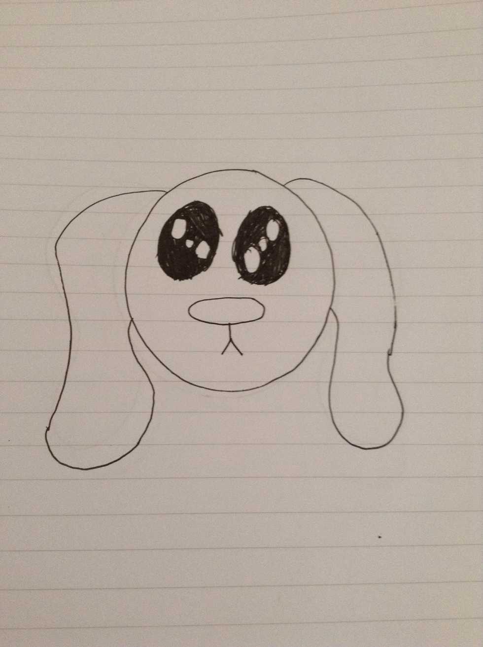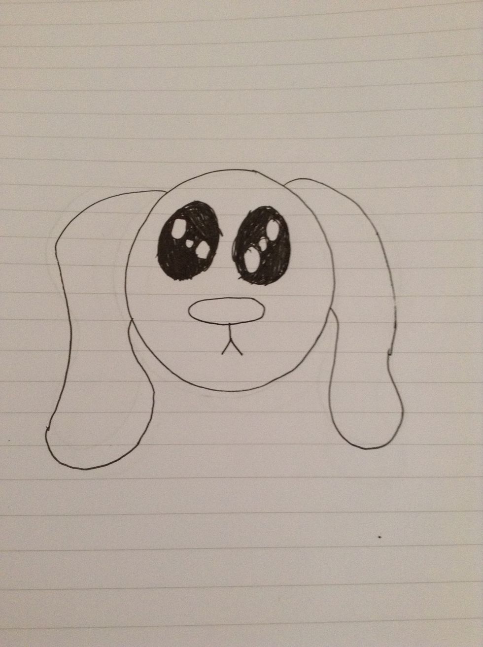 Colour in the eyes but not the smaller circles. Then, viola! Your puppy is done. Give him a bone if you want too.