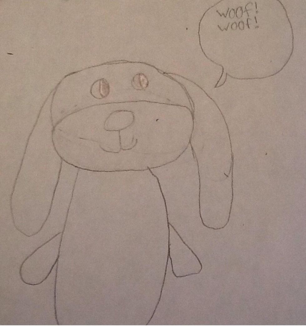 First draw the top of the head.Next you draw the bottom of the head.Then you add the eyes, nose, and mouth.Also you draw the ears.Then you add the bodyLast you add arms and legs and if you want add a speech bubble