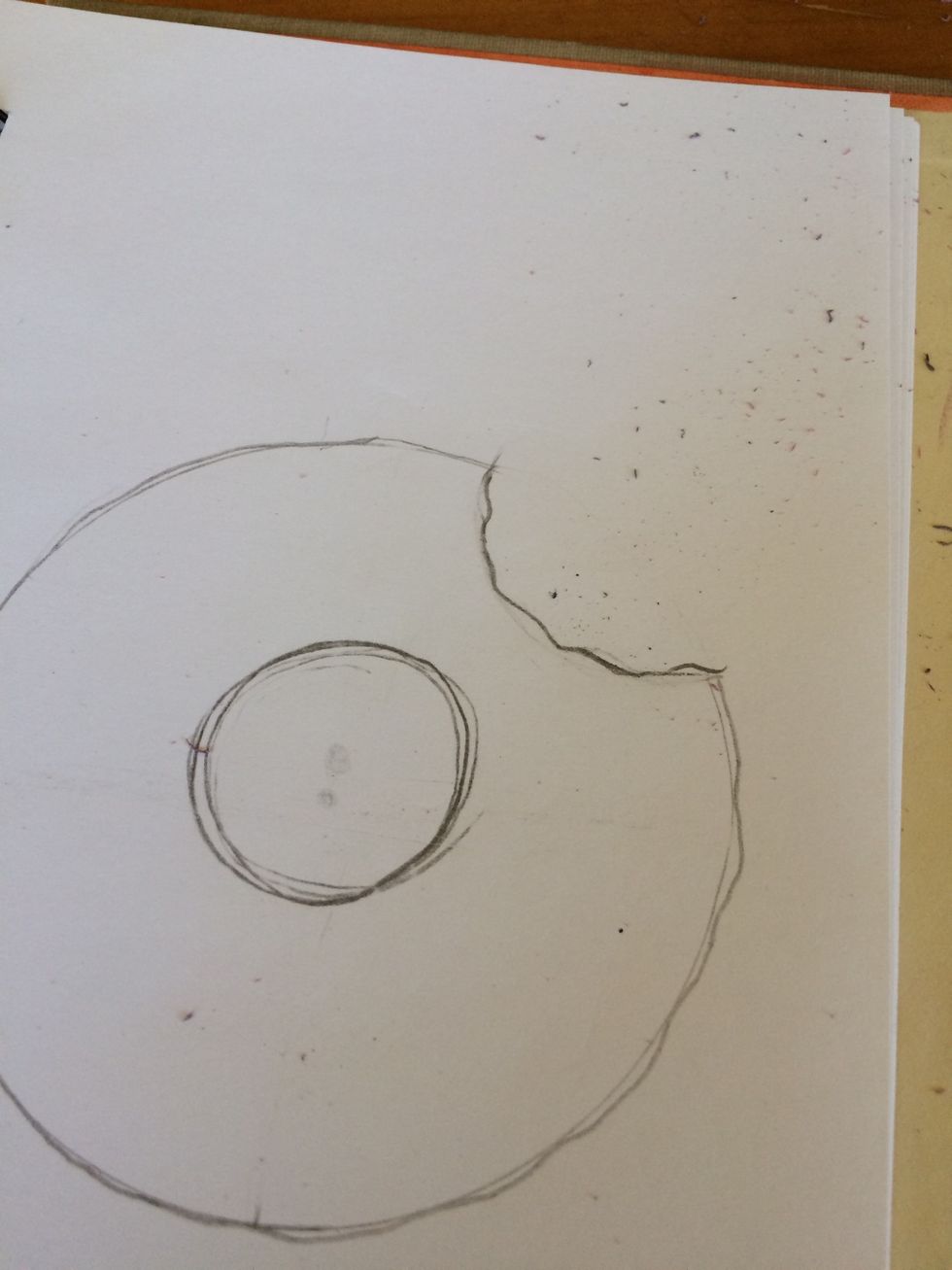 Erase center circle and add small curves to the outside of the big circle