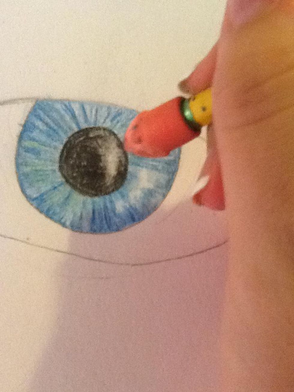 Add lashes (be creative and add your own flare) and color the caruncle (which is the pink thing in the corner of your eye)