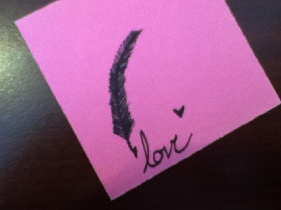 Get your supplies.Take your pen and draw a line that's slightly tilted.Add little marks to each side and make them meet in the top.This is what you should get!!!You can draw around it and make it look cute or whatever you want to do!