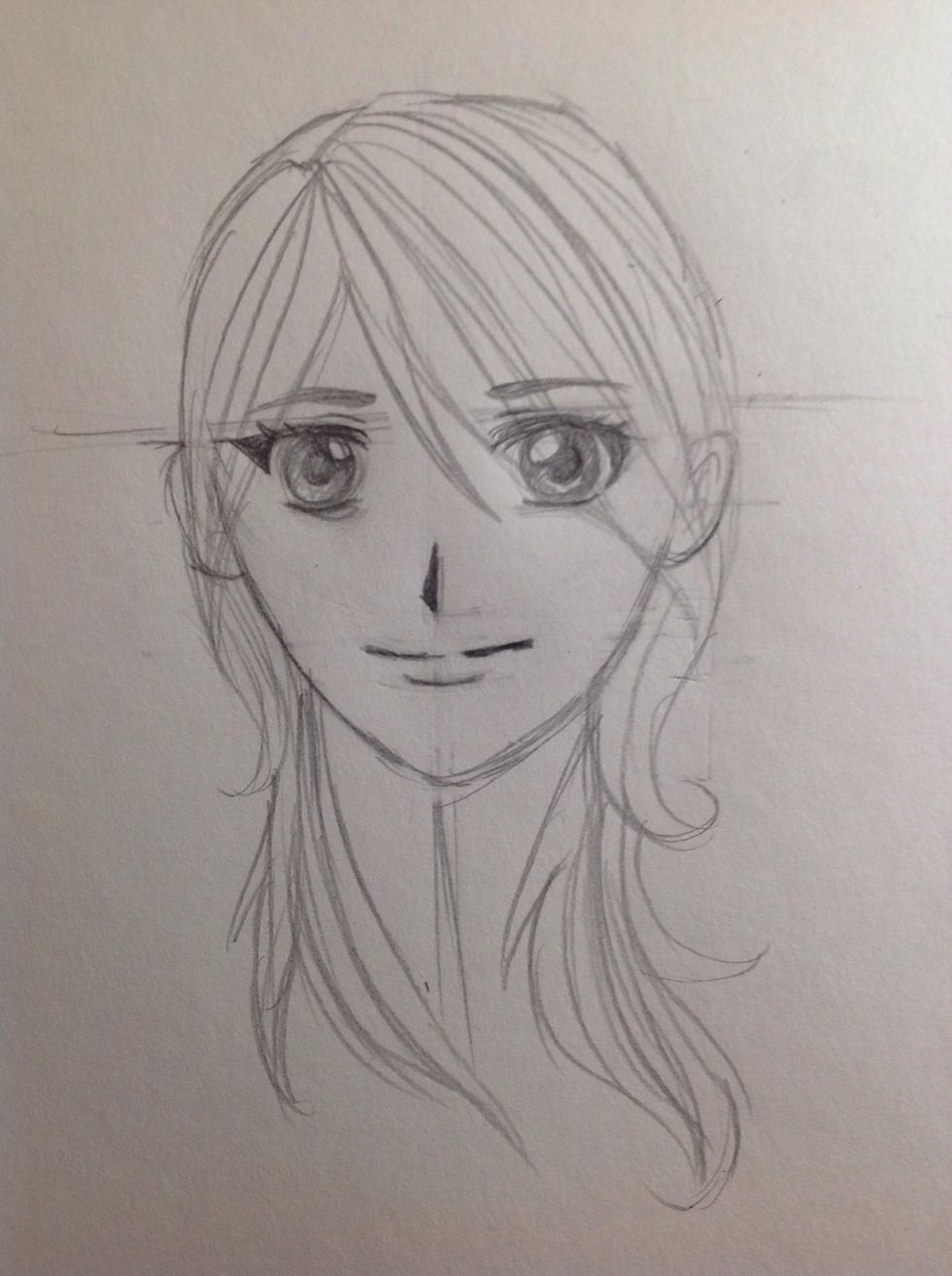 Draw a line through the center of the head. Then draw a horizontal line through the center of the CIRCLE.