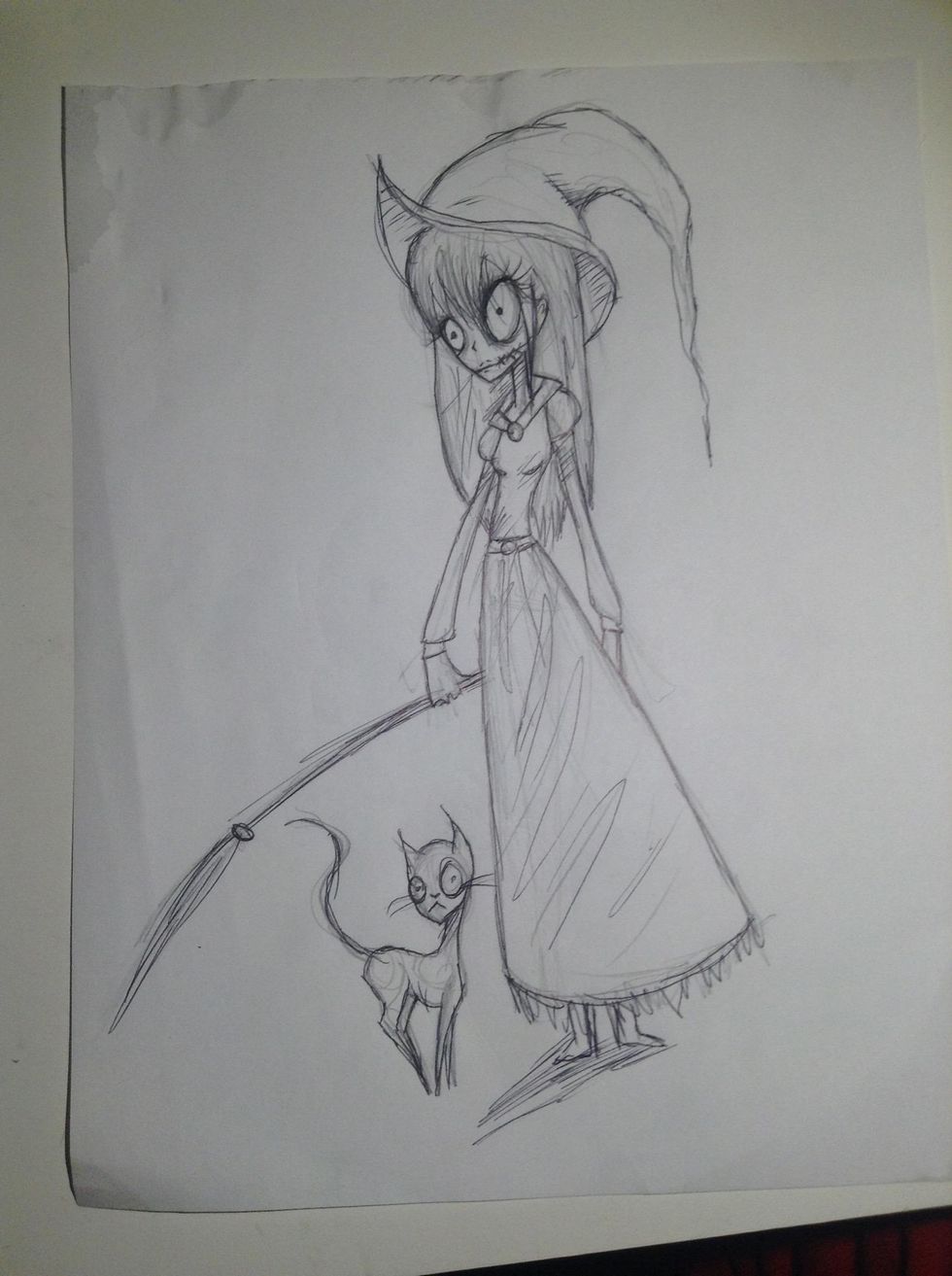 Finished! I Added a broom stick, hat and a cat. The possibilities are endless. There could be a doll or a even a human child! Colouring is optional. Have fun!