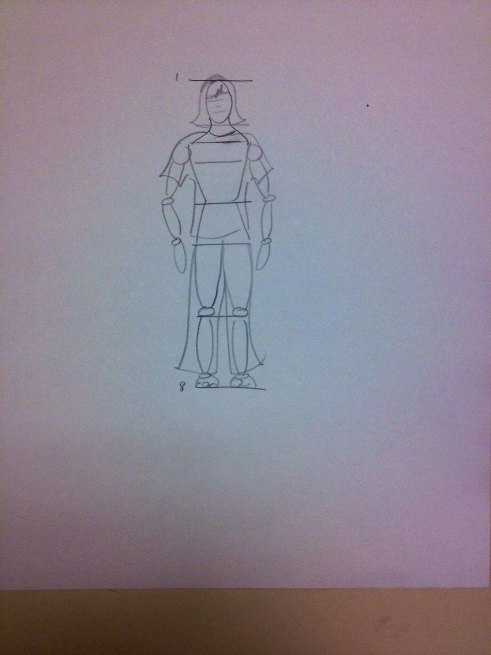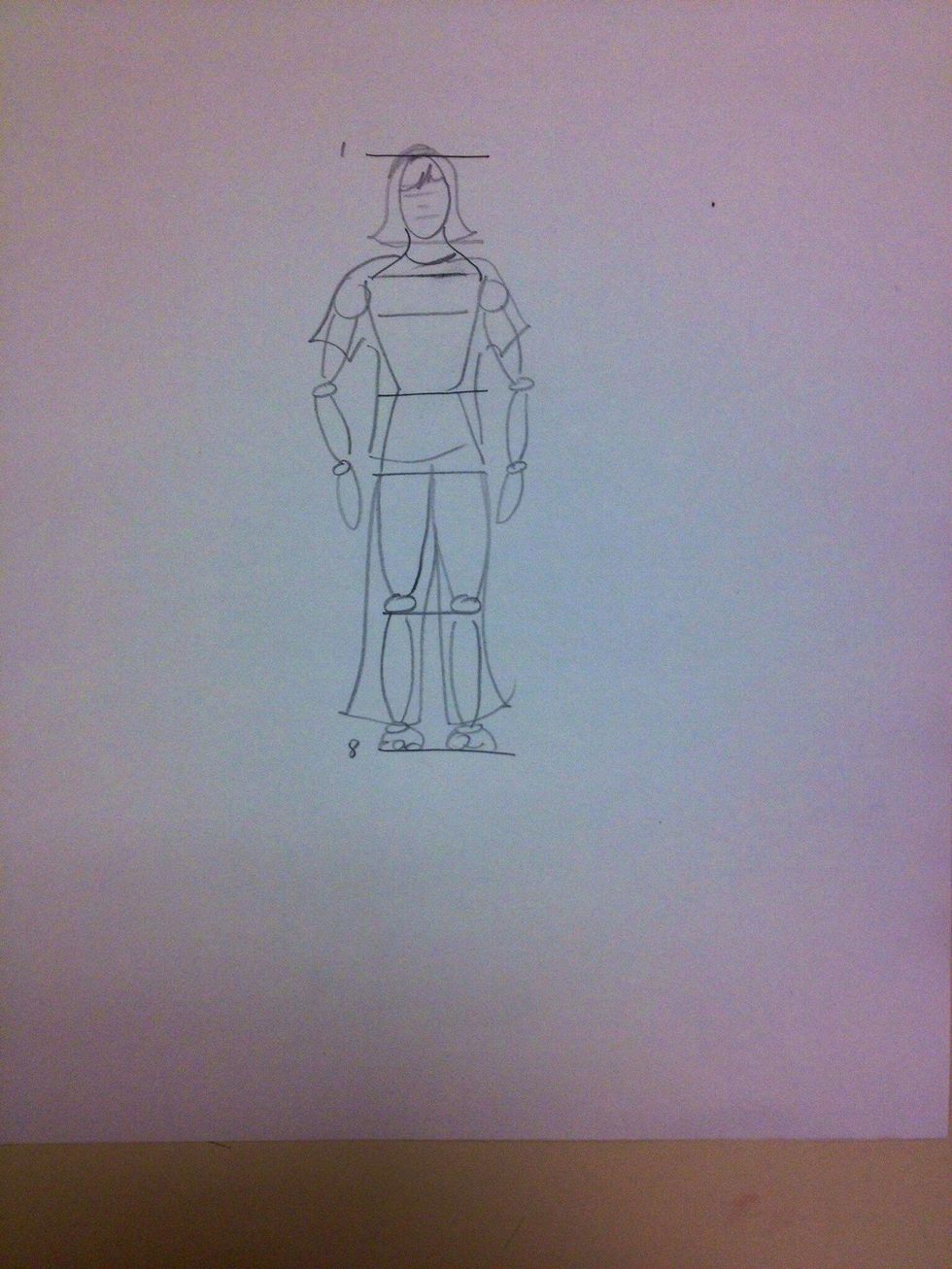 The torso will start in the second 1/8, sketch a light line across the 2nd section.