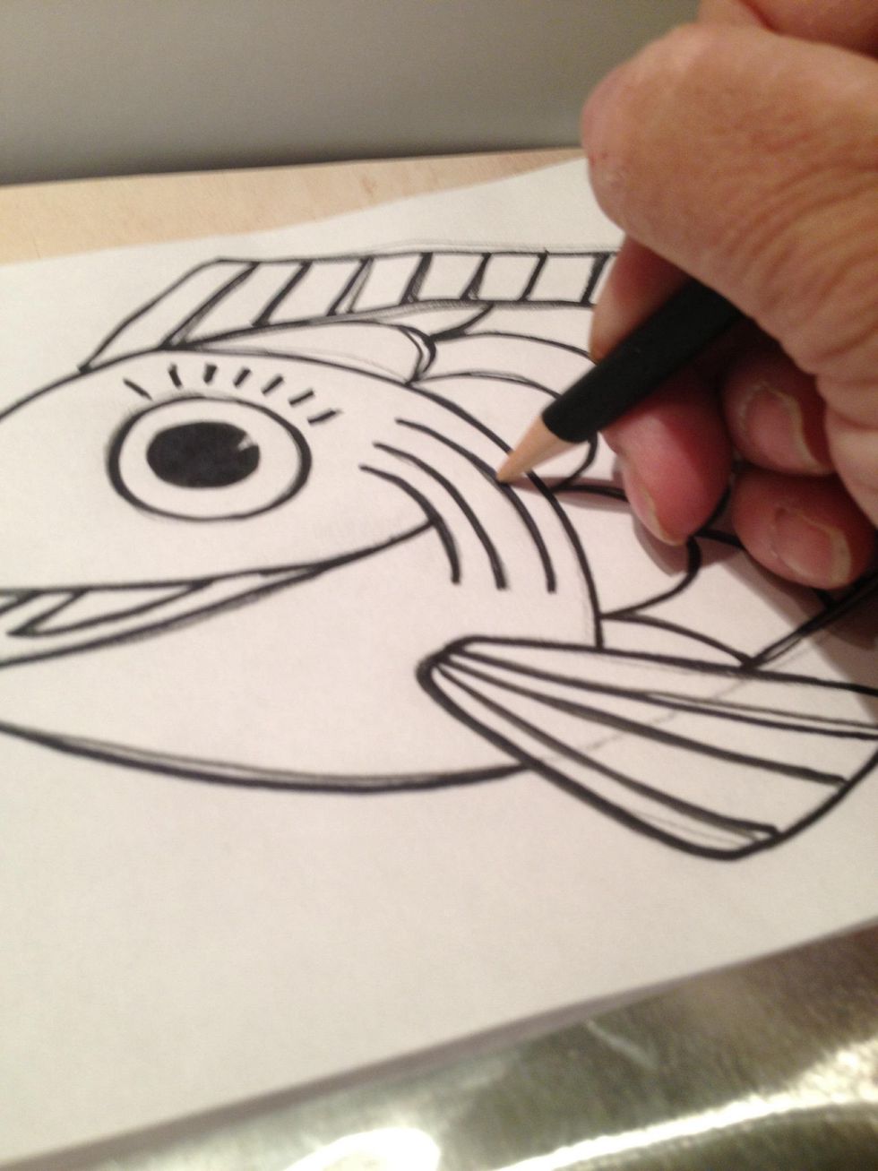 Start drawing scales. I use curved shapes and I stagger them in each row like a brick wall.