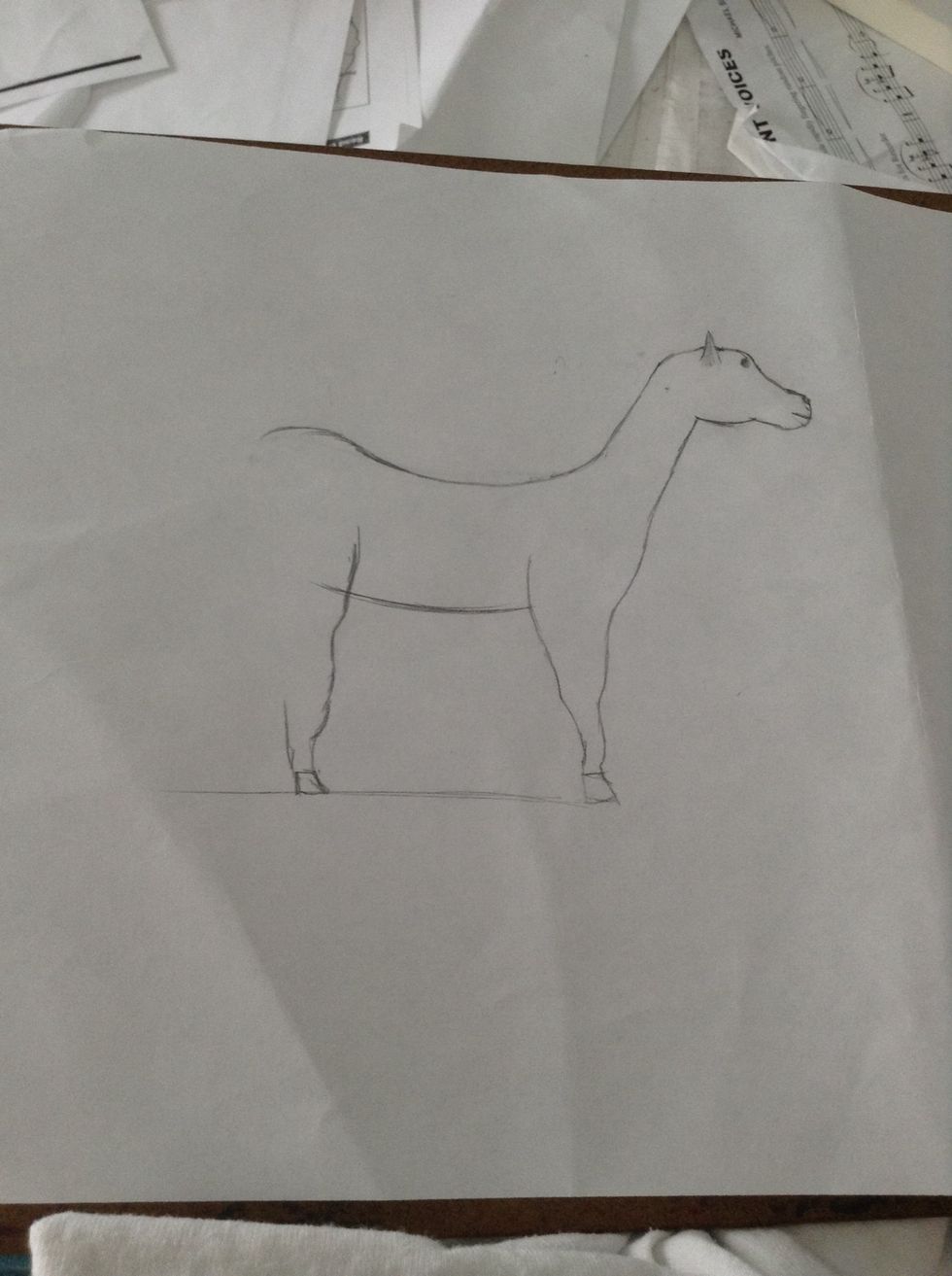 Draw the other leg and put a line below to other hoof to help you line up the hooves