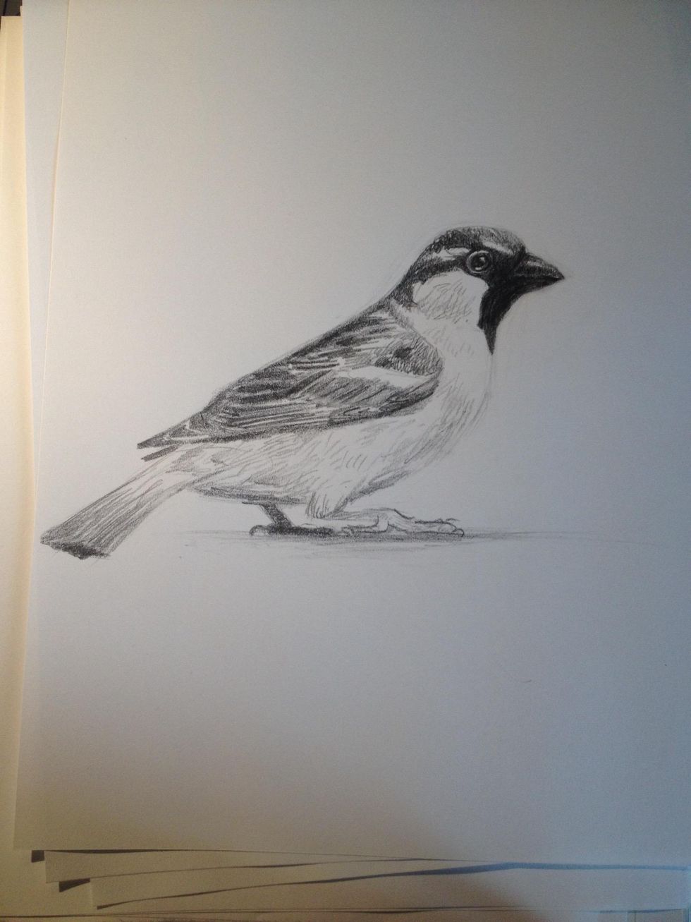 Add some more shading to make the bird look more realistic. Clean up the smudges, then draw the perch.