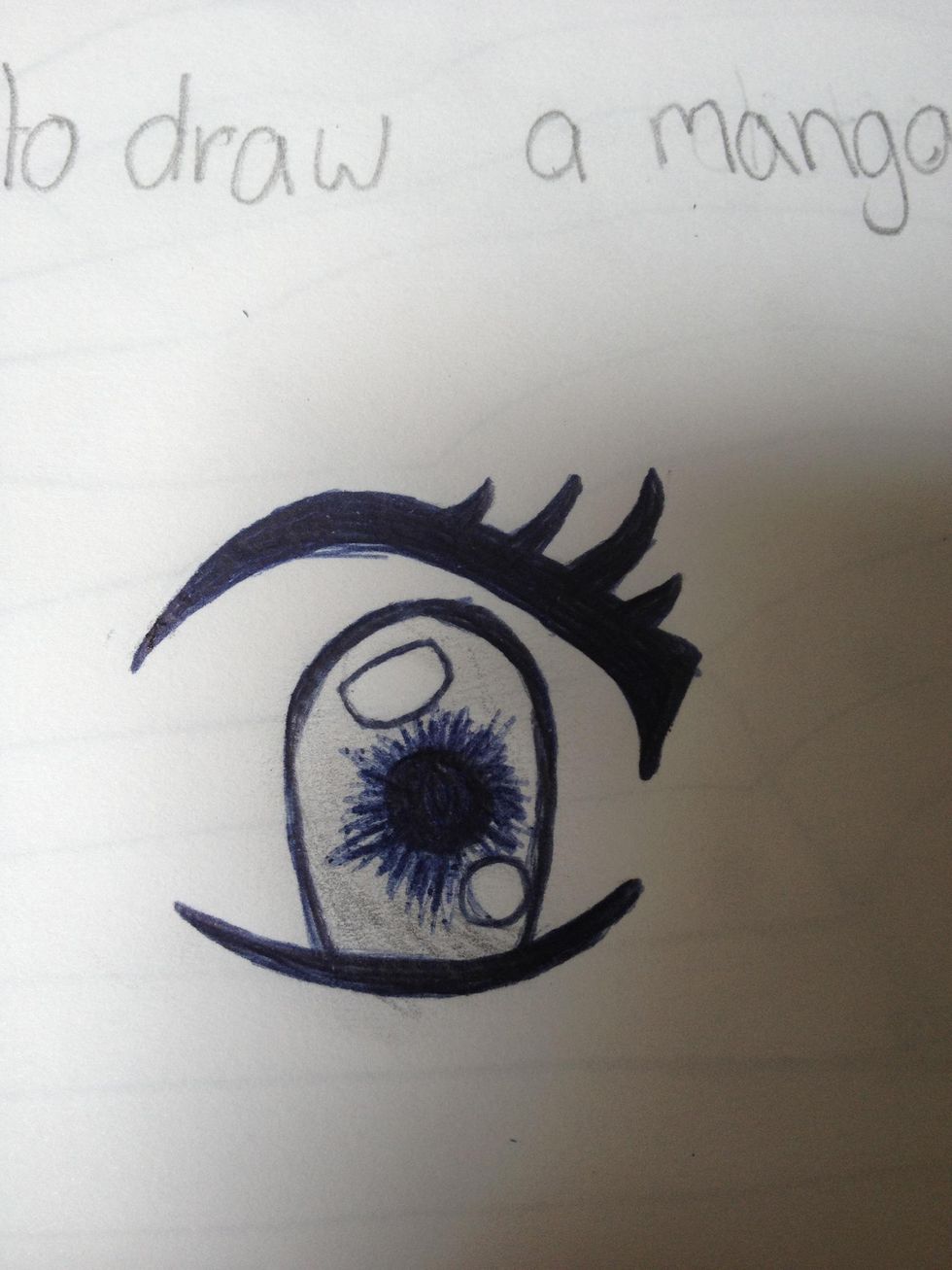 First draw a line like a bowldraw a upside down bowl on topNow thicken the linesNow draw the center of the eyeNow draw two circles in the the centerNow redraw the eye in penNow add the details
