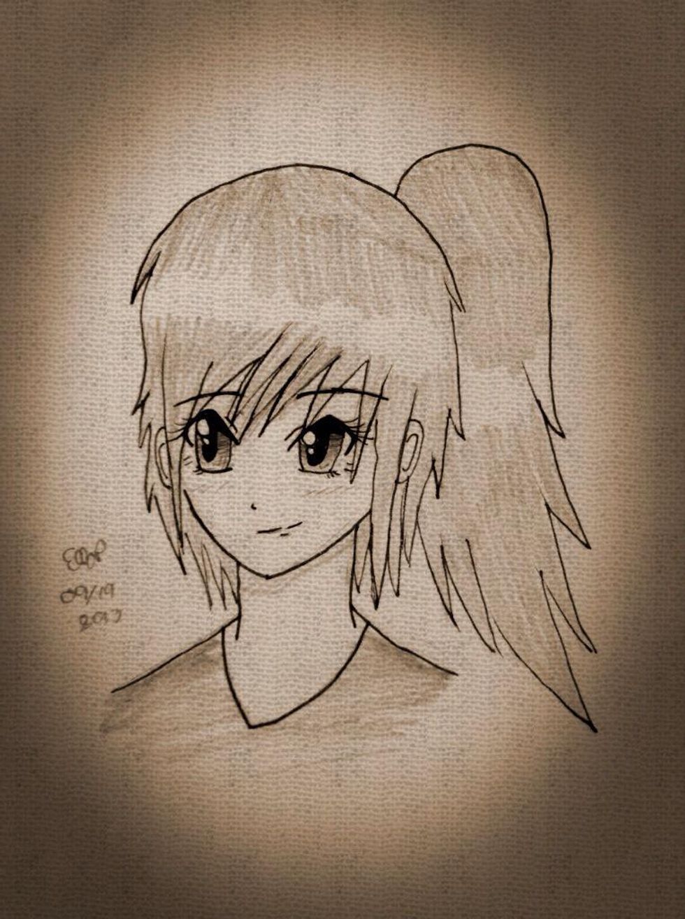 Add the bangs of the hair now. Make sure to keep it light, and not plastered onto her head!