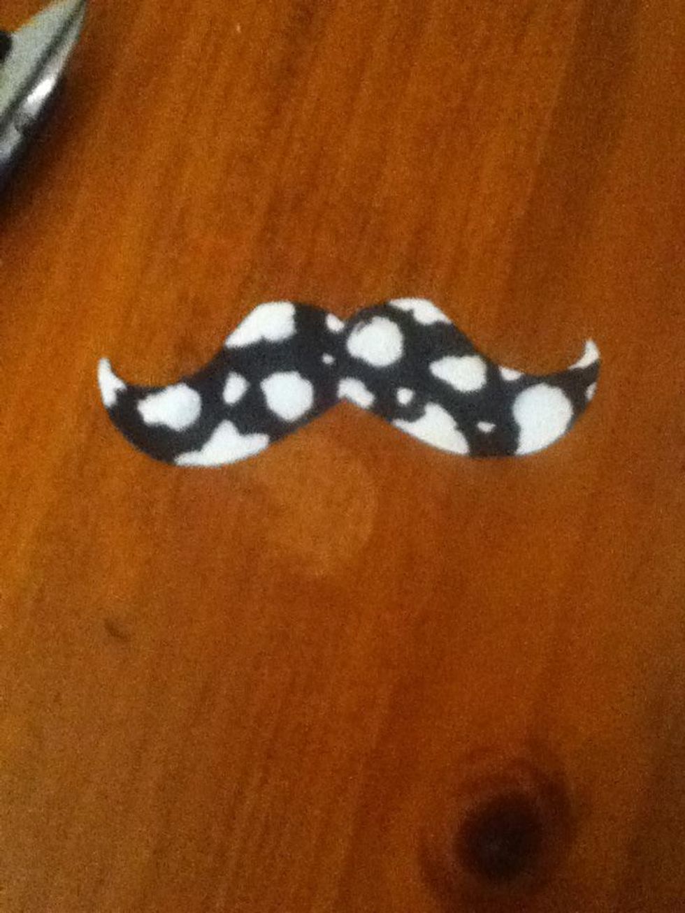 SuppliesFold the paper in halfRun your finger down the edgeUnfoldDraw one half of a mustache on the paperFold so that the ink is on the outsideCut outOnce out unfoldIf u want u can colour it. I coloured in nail polish^o^