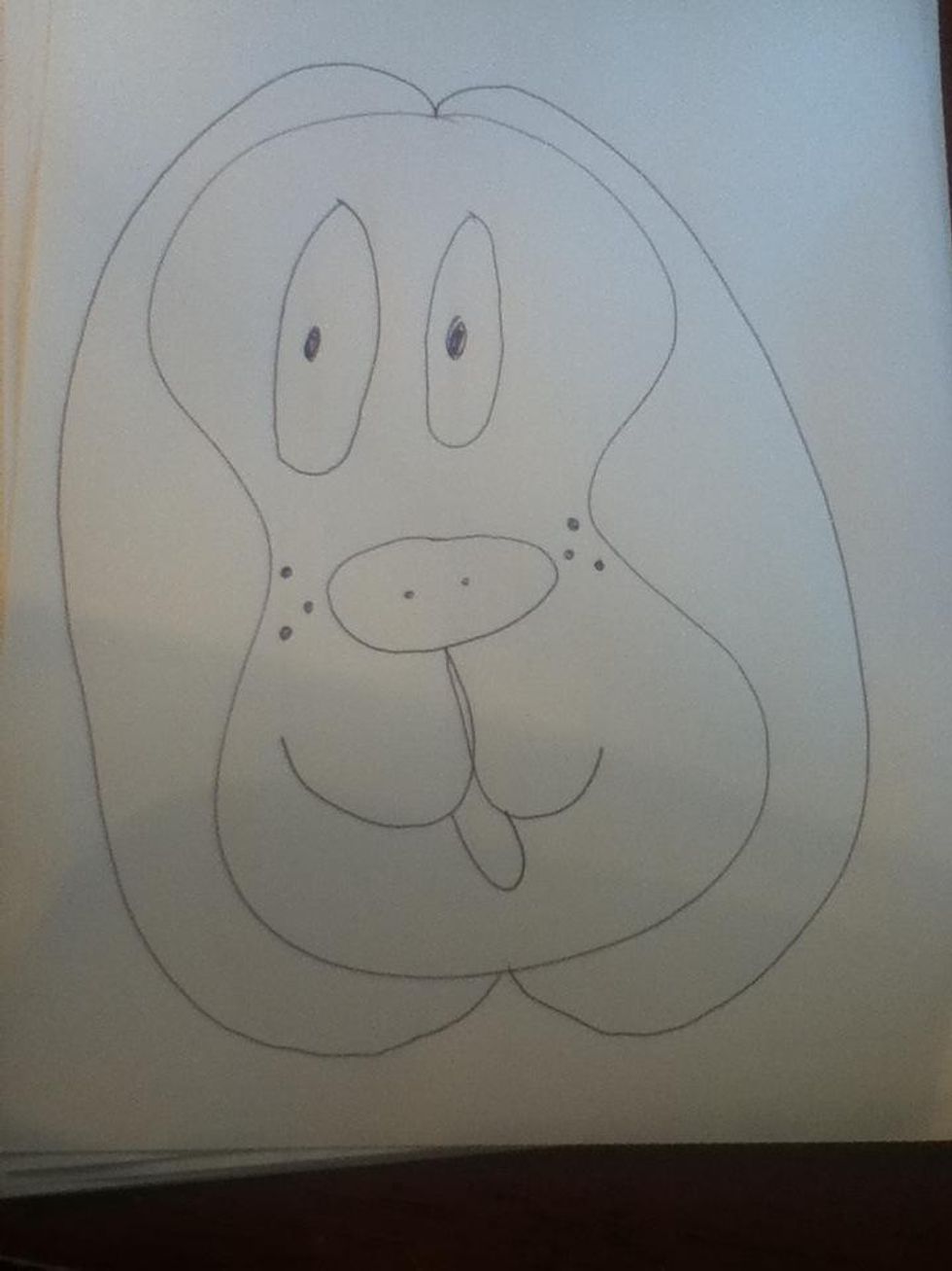 Need a pen and paperMake a peanut shapeBig ovals for the eyesDraw a horizontal nose with two dotsDraw the mouth and the to tongueAdd the pupilsAdd whiskers...and the ears. And you're done!