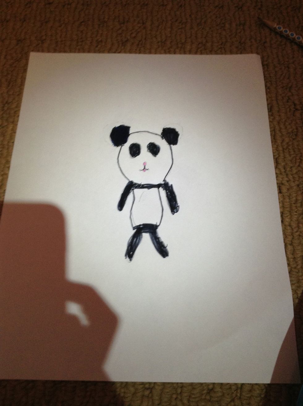 Color the arms and legs black leaving the stomach white. Outline your pencil lines and you're finished!