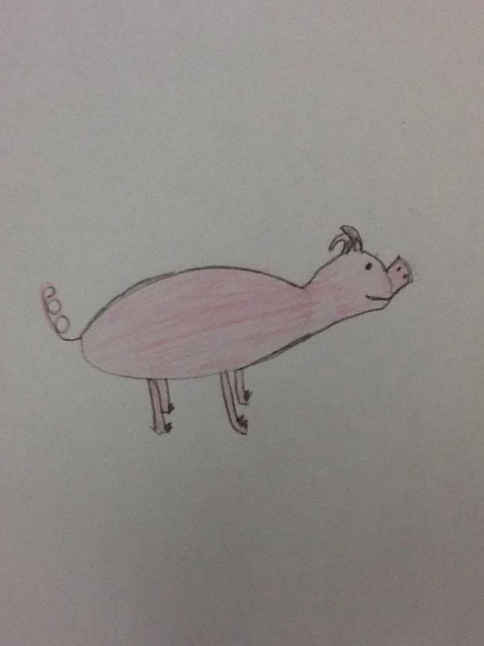 Start out with blank paper.Draw a small oval for the body.Draw the legs.Draw the head and the face and add some details.Draw the little curly tail.And here's who your finished product.