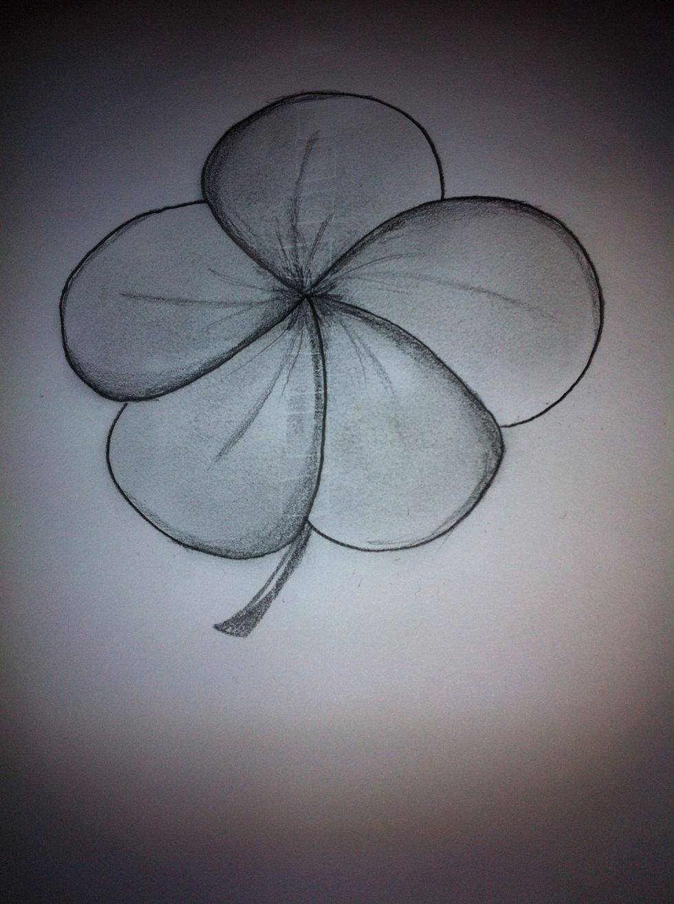 1st pedal. Draw a "j" like curve or half a heart. Note: while drawing the pedals I found it easier to turn the paper after each pedal, resulting in a complete 360 when finished
