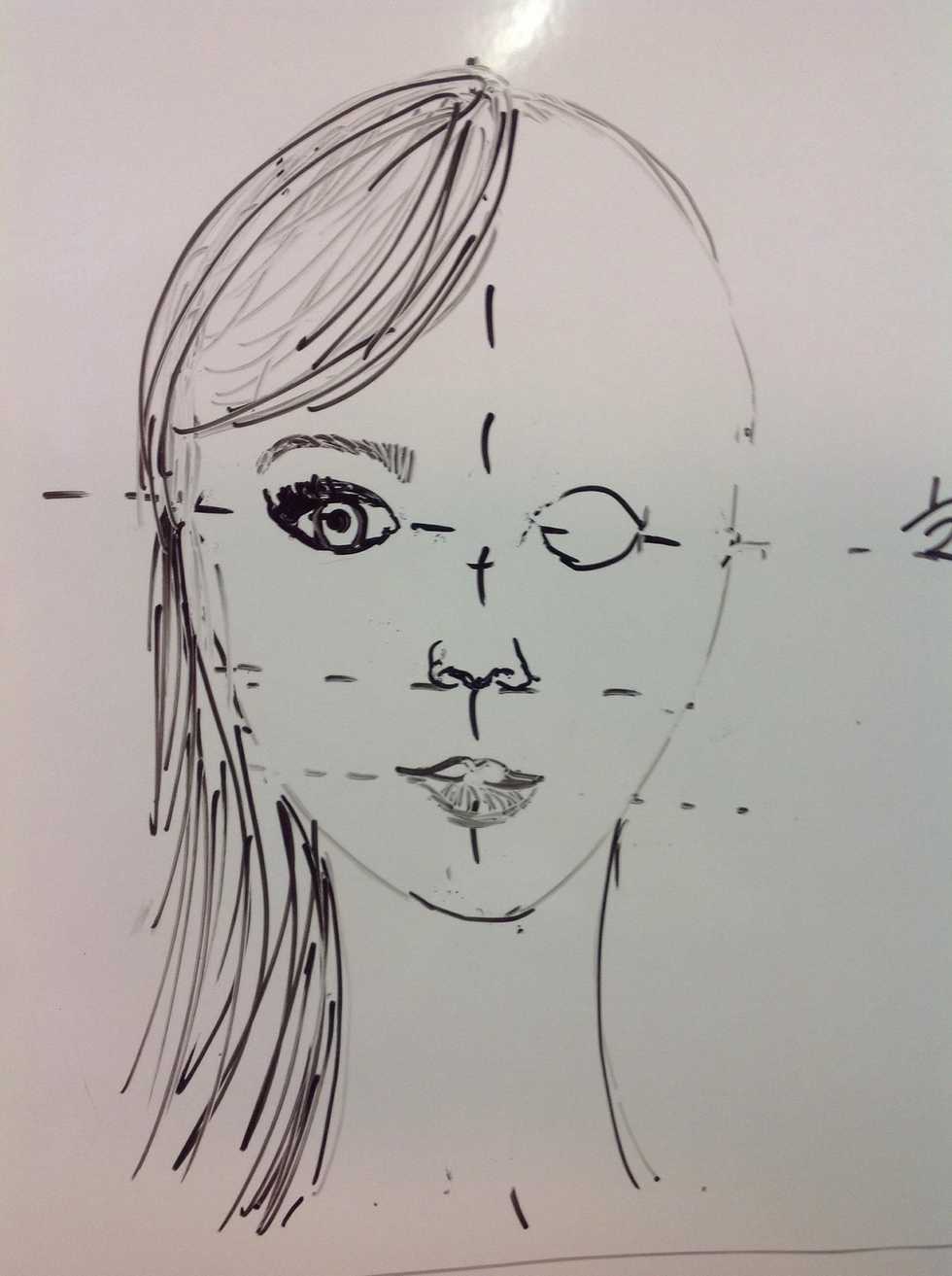 If having trouble with spacing your eyes, use this guide.... You should be able to fit five eyes from one side of your head to the other.