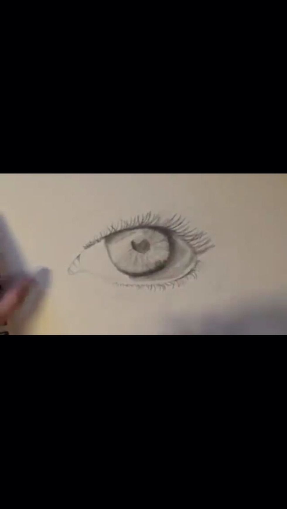 Begin by drawing a lemon shape-NOT AN OVAL! Sketch in a circle for the iris. However, it is not a full circle, part of it is covered by skin