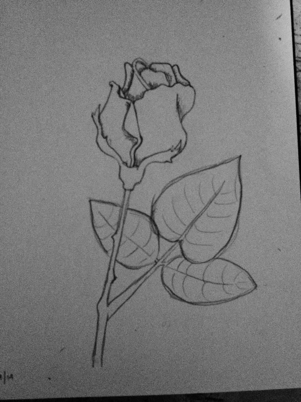 Now draw the stem, making sure to put in some thorns as well and don't make it perfectly smooth and straight, give it a bit of character!
