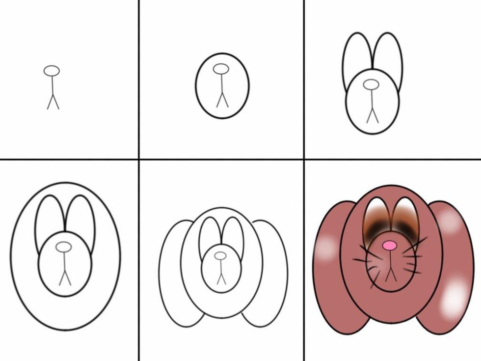 Circle the little stick figure. You have now created the pup's muzzle/snout!