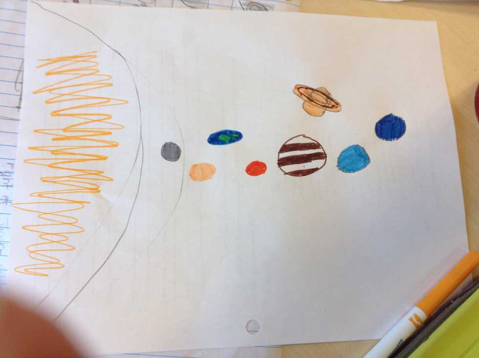 After make a planet with a circle around it color it peach and a little strip of brown that is Saturn