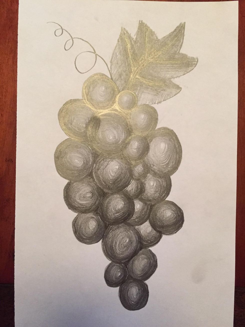 Begin turning your grapes into form by adding value. Remember the darkest value goes on the lines and fades as you go in.