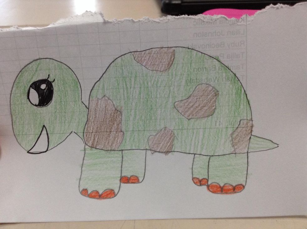 Colour it in with your green and brown pencil and enjoy your turtle.