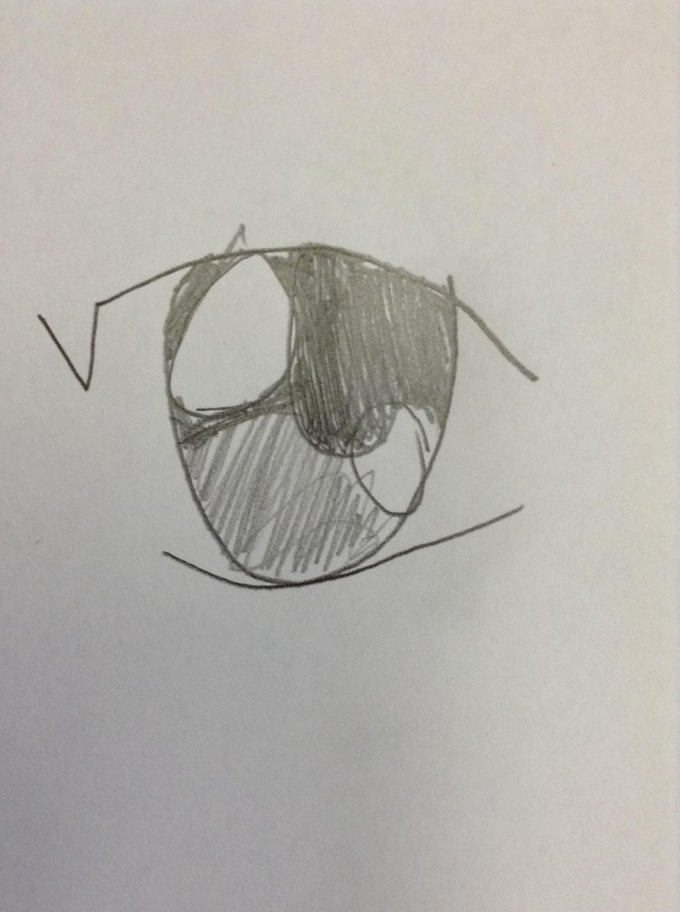 Next,draw two circle in the middle of the eye 1 at the top left corner and one at the bottom right of the shape.