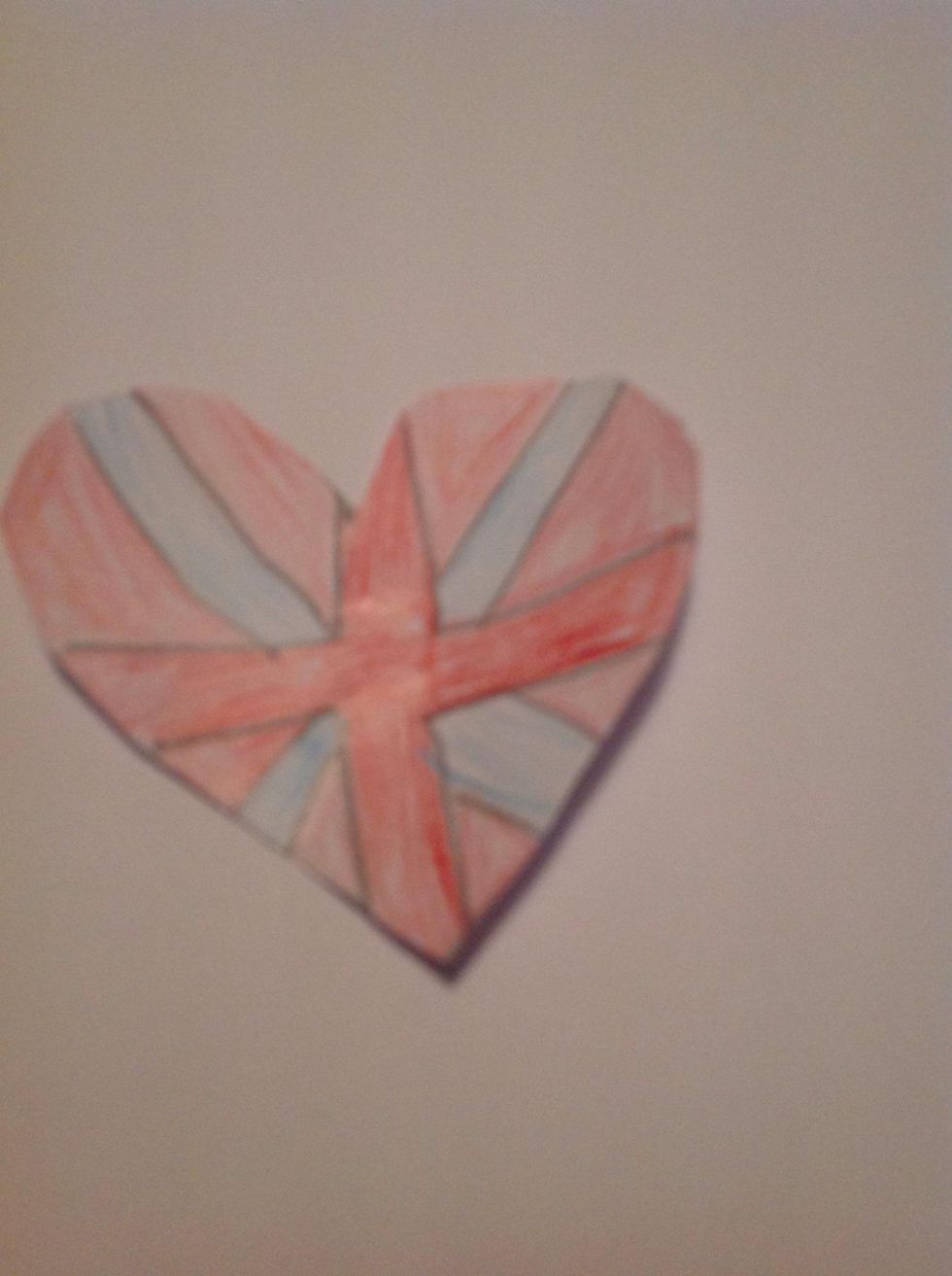 Start by drawing the love heart.Draw a cross like this .Now draw an x like this.Colour the red areas where the are Colour the blue areas