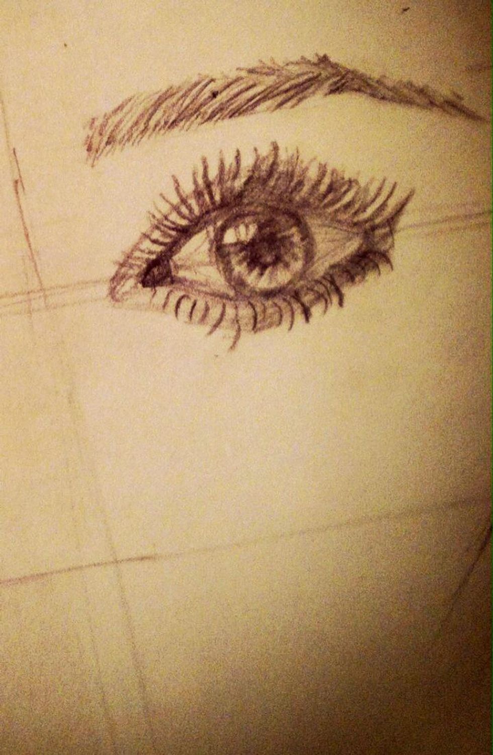 If you want to add some details. draw an eyebrow, shade around the eye using your finger, and draw more eyelashes. And here you go, you have a drawing of an eye.