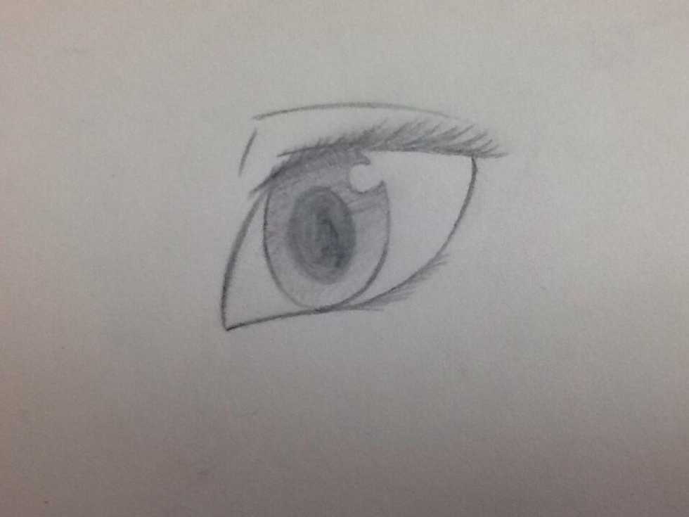 Add three lines above the eye as seen in the picture. This will show that the character had eyelids. (Can you imagine how creepy it'd be to not have eyelids?)