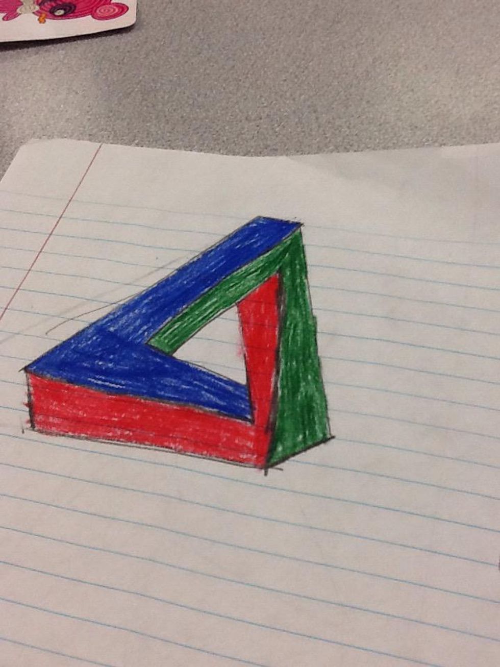 Draw a triangle with flat corners.Draw a small triangle inside of the already drawn triangle.Draw lines connecting the edges of the small triangle to the corner of the bigger triangle.