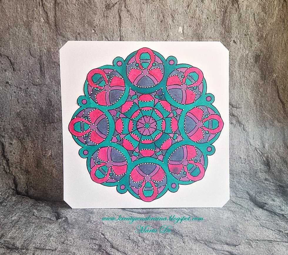 Fill all holes with your colors, try to create repetitive pattern around your mandala.