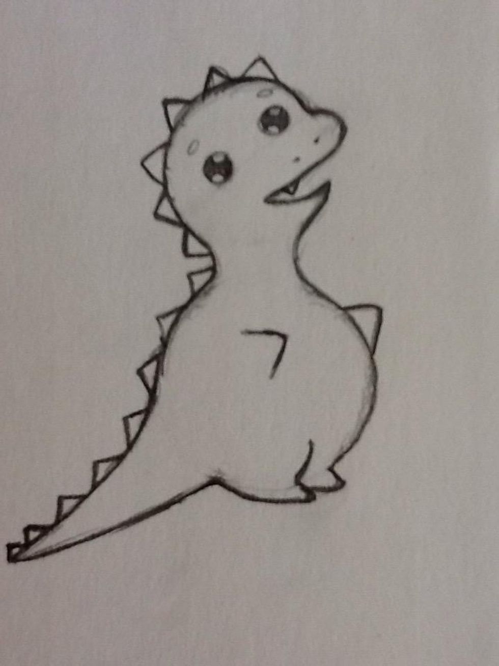 To draw the spikes, draw triangles along the top of the head, back and tail.