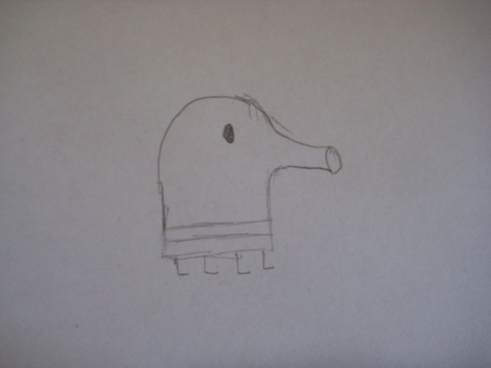 Next, draw a little trunk for him.