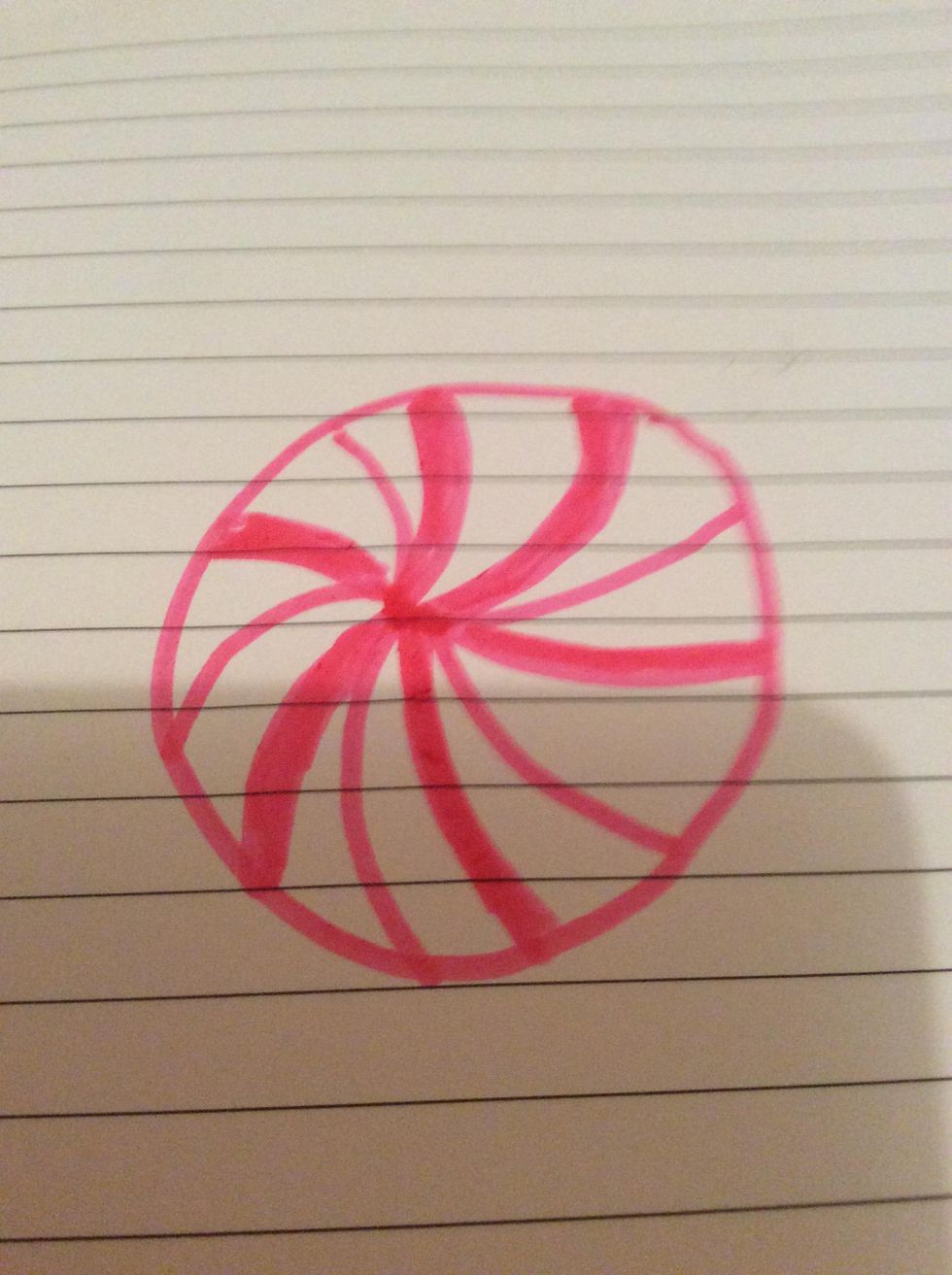 First draw a circleThen add some swirl patterns all aroundSo it looks like thisThen make the second lines bolderThen your done!😊🍭