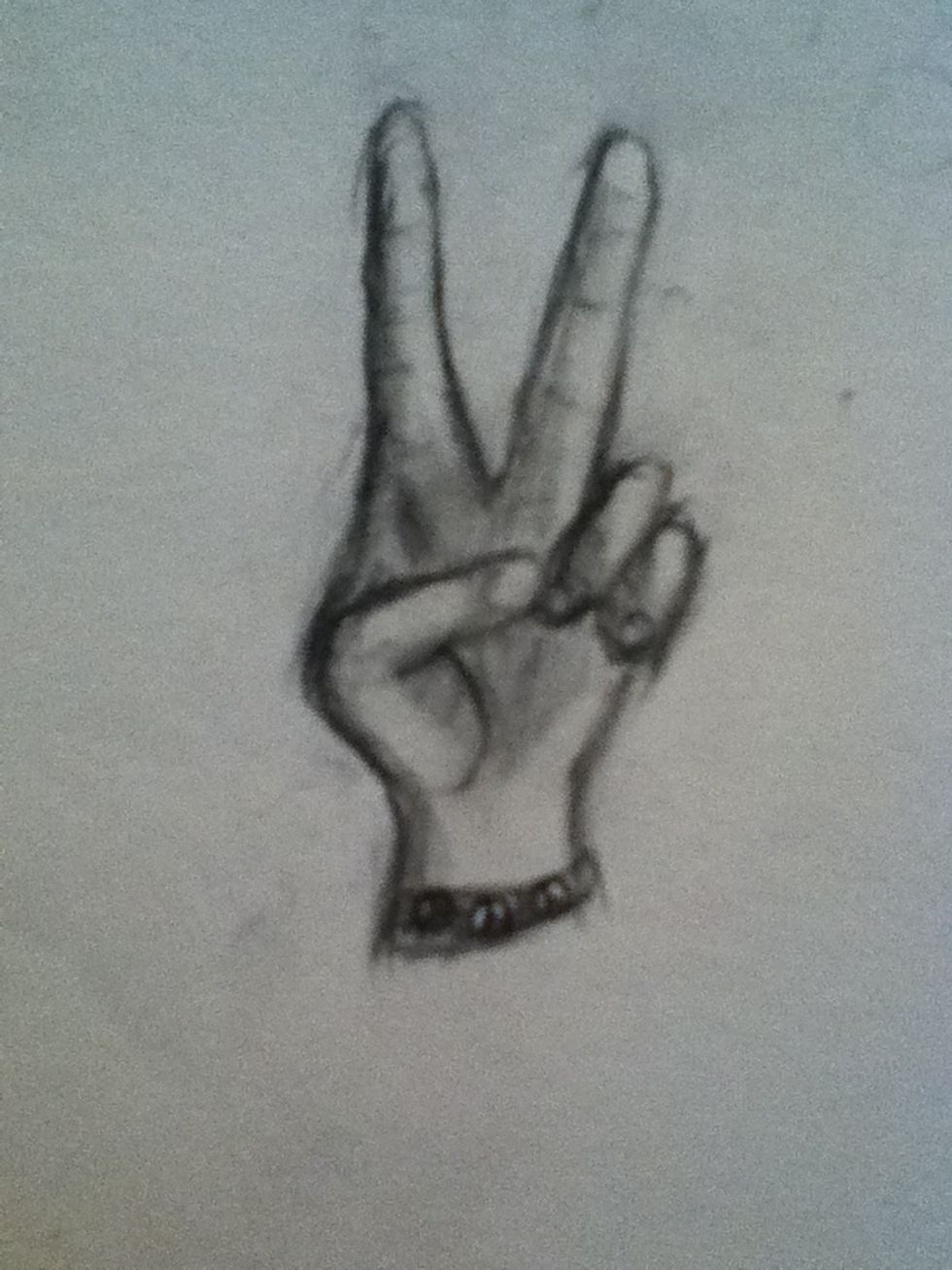 Look at your hand and start sketching the creases. There are lots of them, think about how your hand bends as you do the peace sign! Nails aren't talons, by the way.
