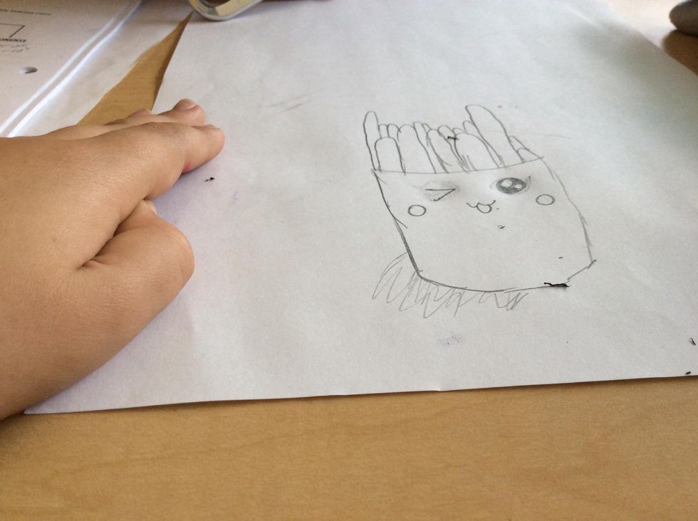 Start with blank paperDraw a curved lineAdd a sideOther sideBottomAll the friesLike thsiHighlights!Kawaii cheeksNuaColor inHi!Add the shadow, and your e done ✅
