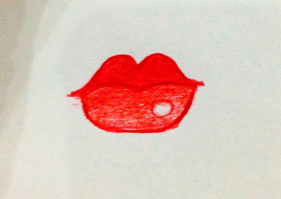 Fill in the lower lip lightly except for the bubble. This will give a glossy look.