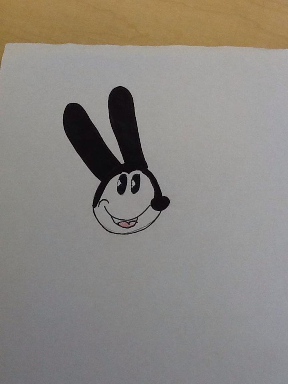 Now Oswald is almost complete! All you have to do is trace him, and shade in his ears and hair with the sharpie.