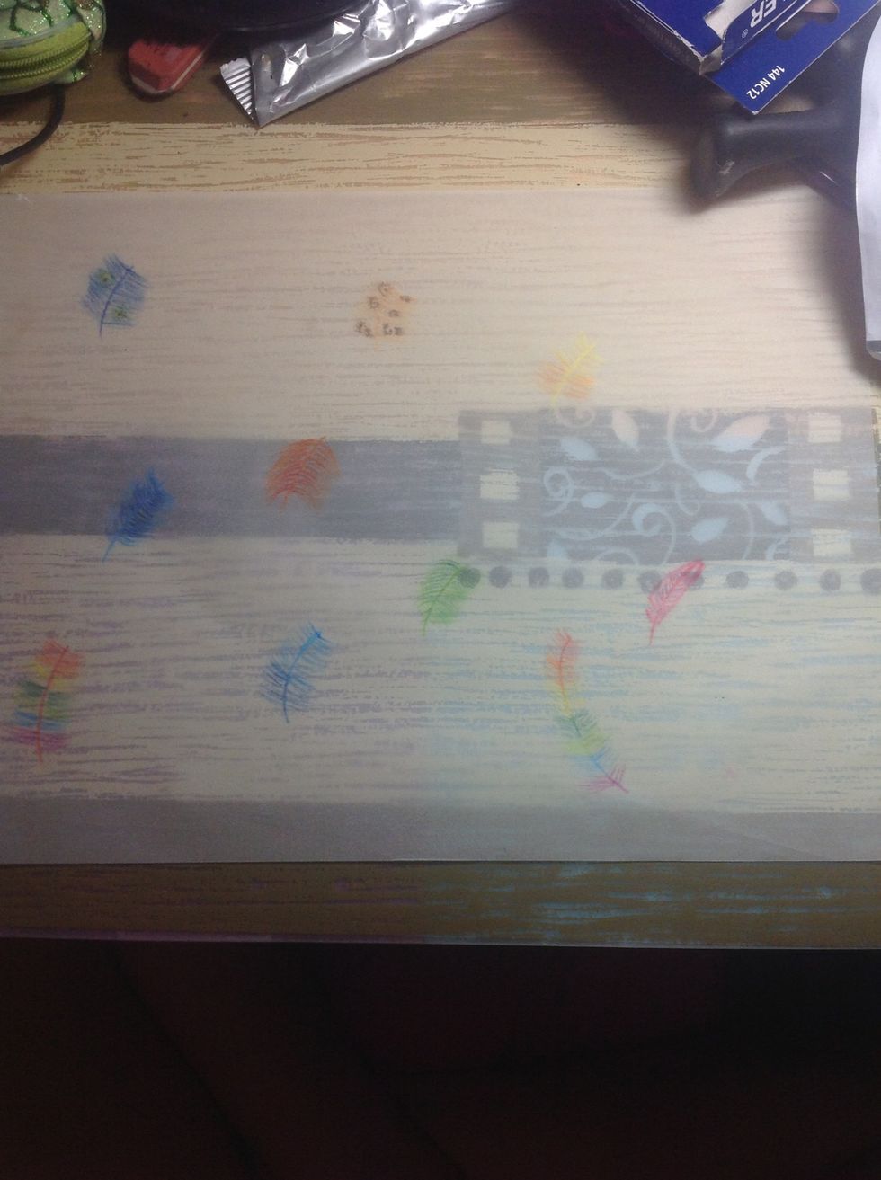 Darken up the peach feathers, remember to go lightly on top of the prints