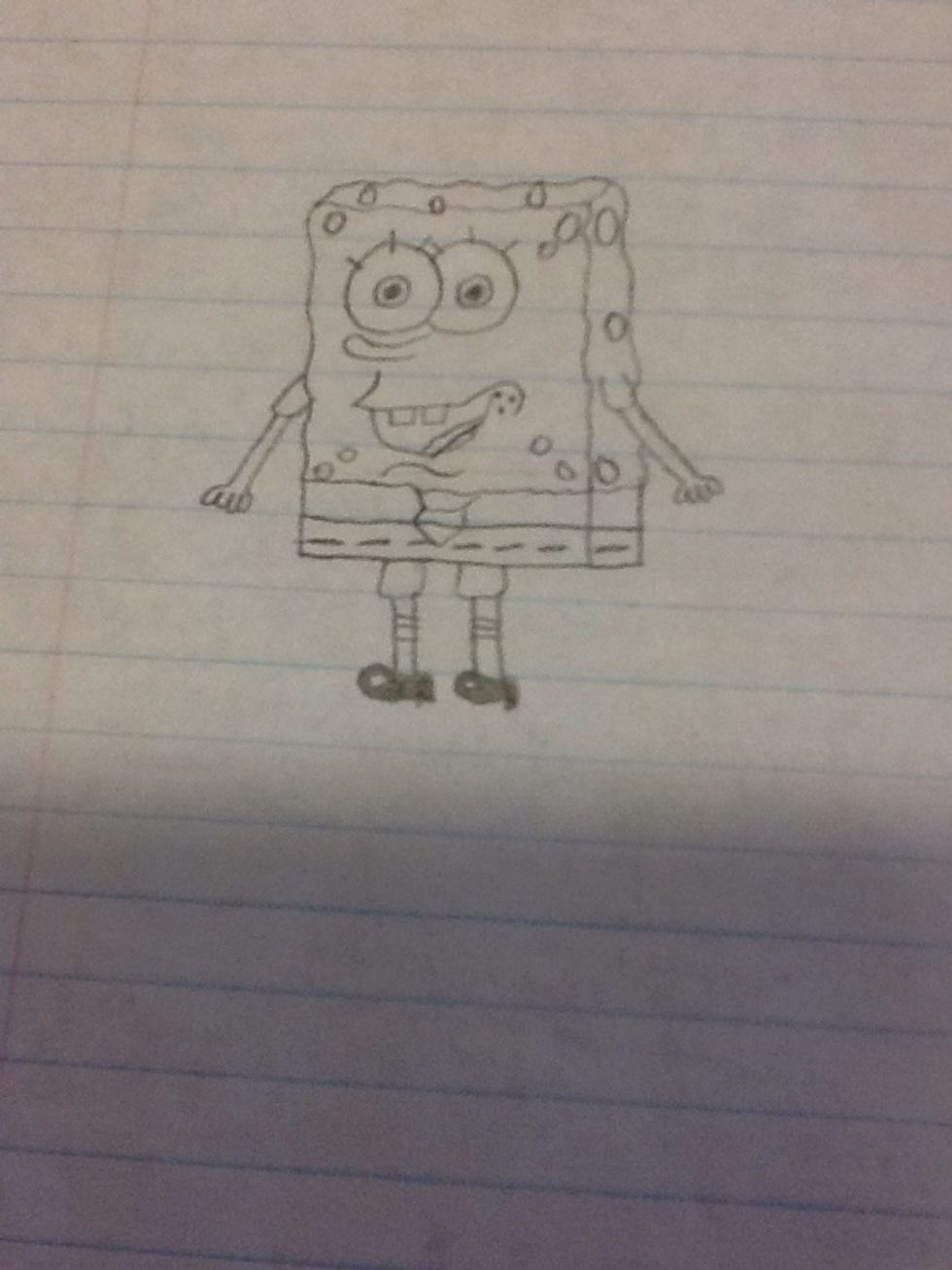 Now you are able to draw Spongebob's outfit. Draw his usual square pants and tie.