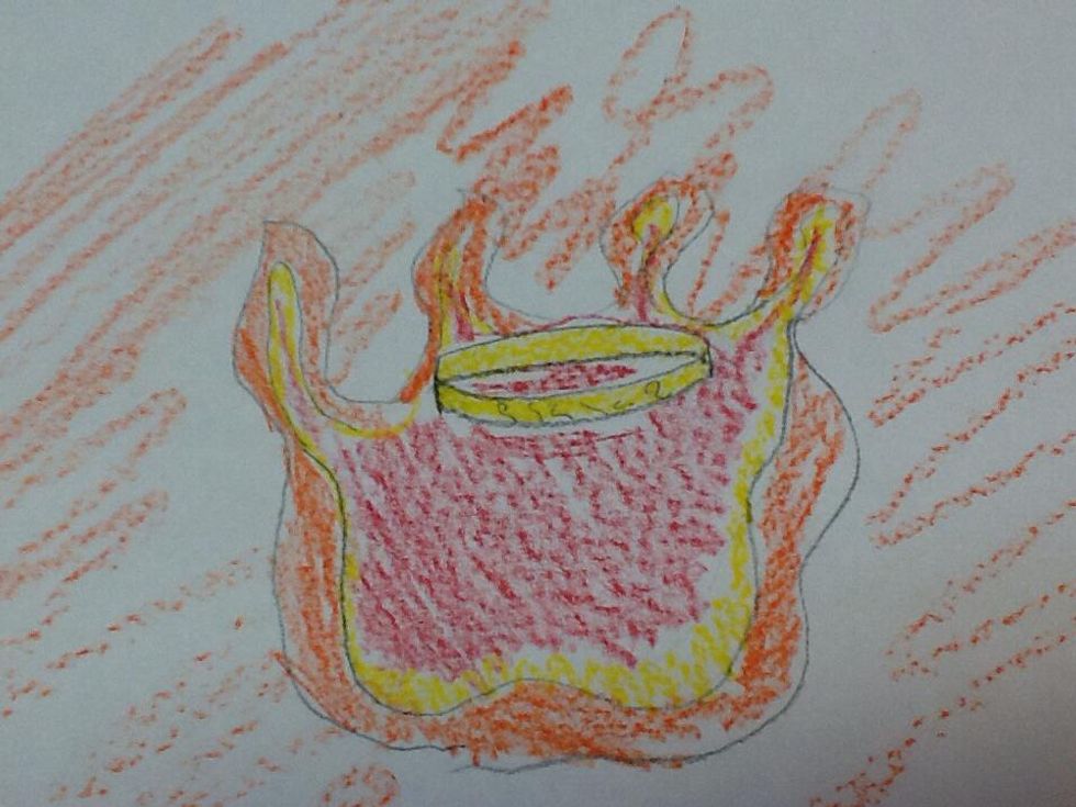 Then, draw some details on your flames and colour the flames and draw some lines on the ring.