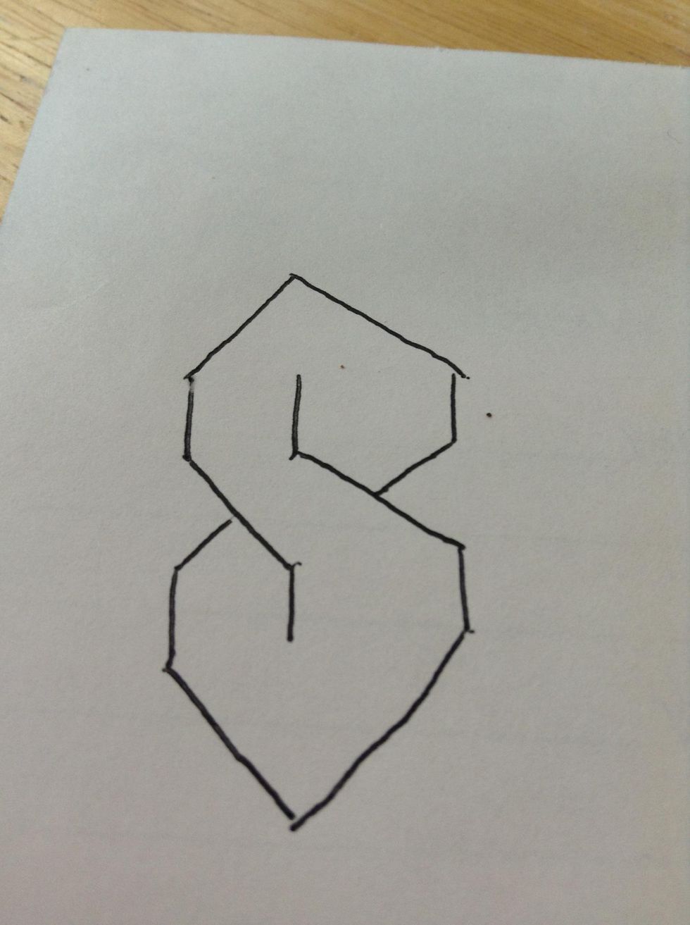 Connect the top third line to the diagonal line and on the bottom, the first.