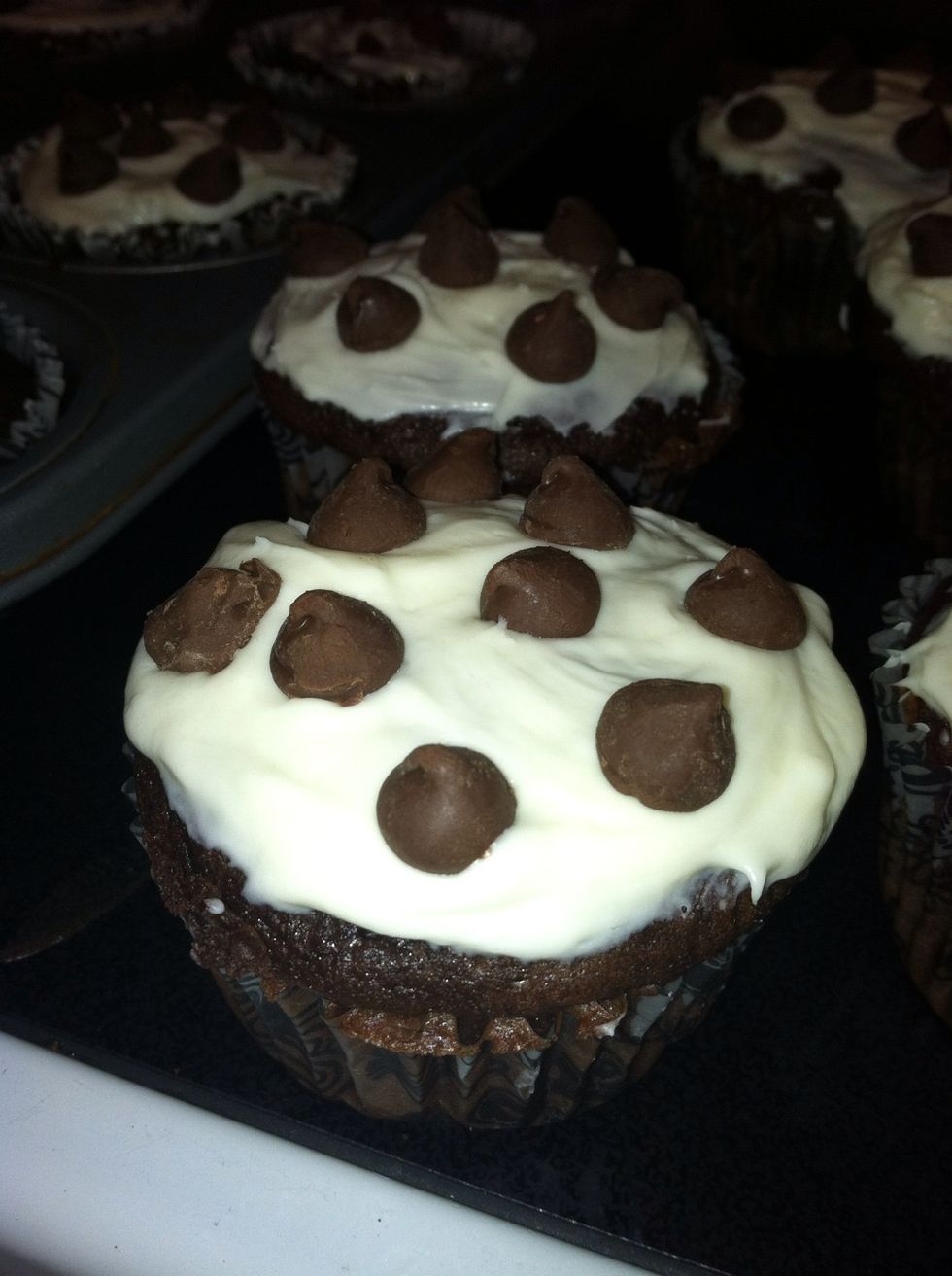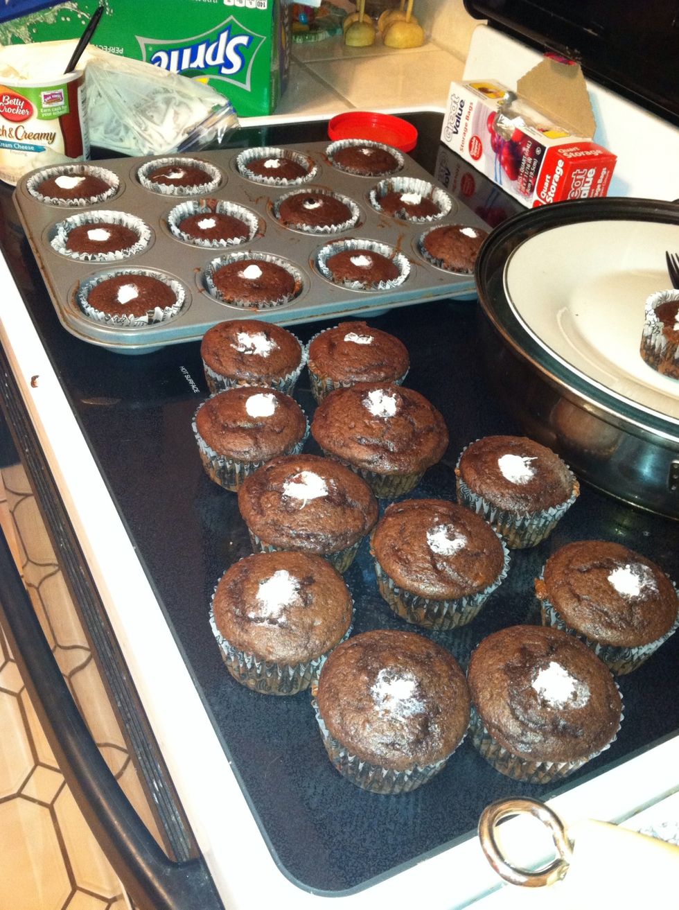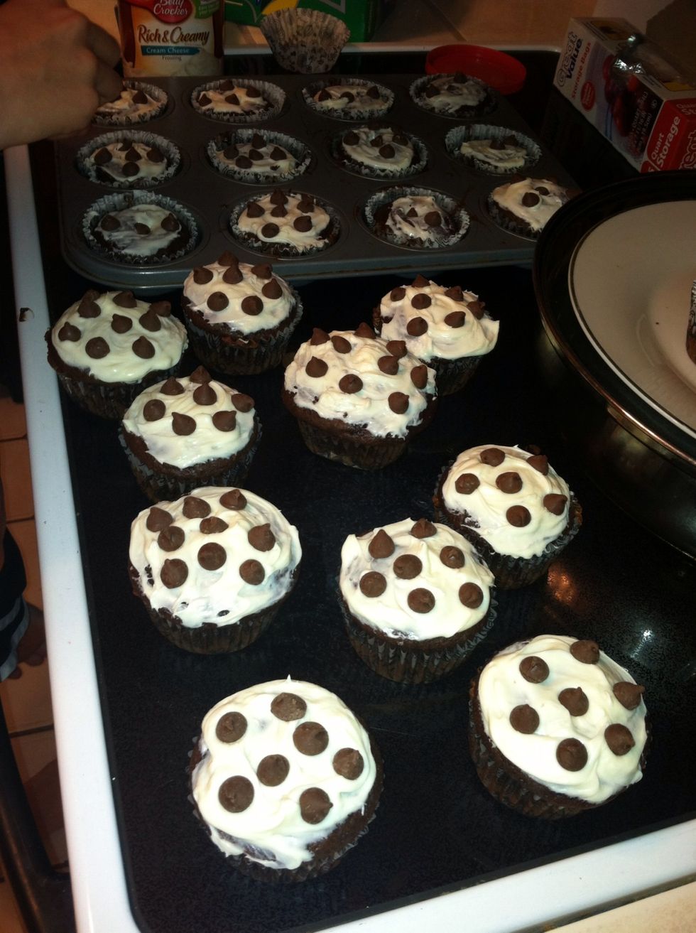 Add frosting to the tops of the cupcakes